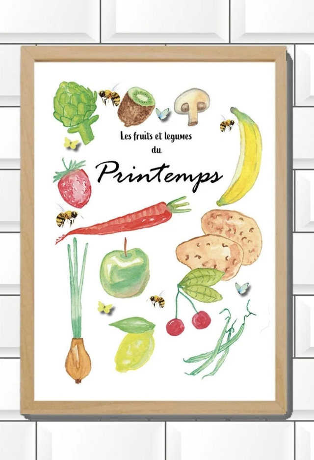 Affiche aquarelle "Fruits et Légumes du Printemps"