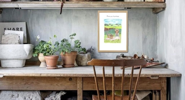 Cette affiche invite à la convivialité et à la tranquillité champêtre, parfaite pour ajouter une touche de nature et de poésie à votre décoration.