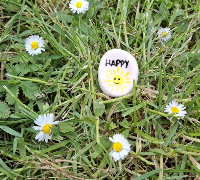 « Happy » avec un soleil souriant.
